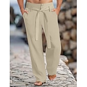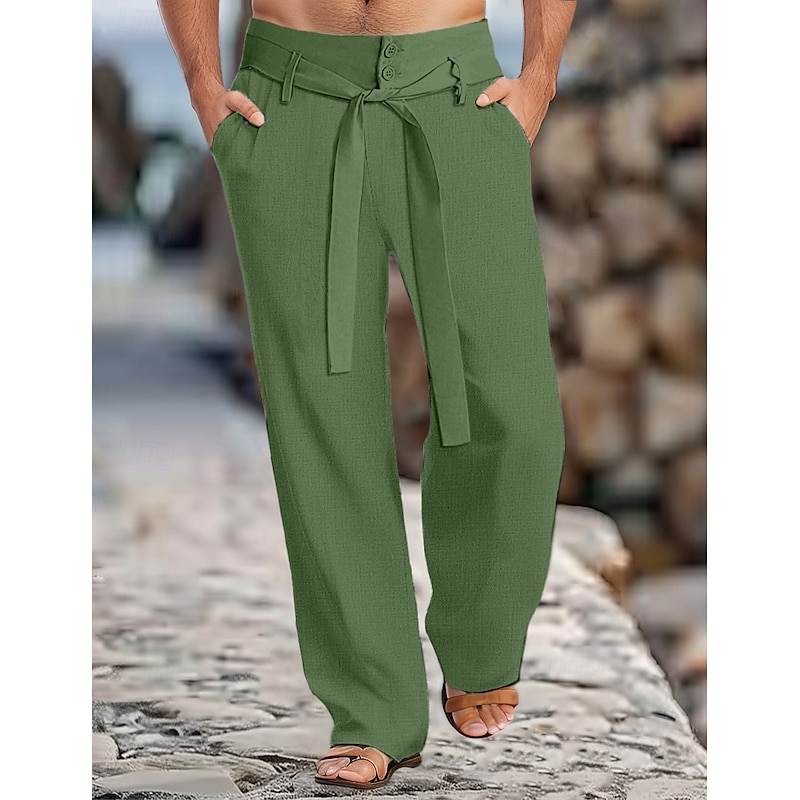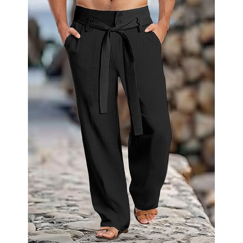 Highlights [Fabric]: Crafted from a linen-cotton blend, these men's trousers are designed to be lightweight and breathable, ensuring comfort during the warm spring and summer months. The fabric's natural texture adds a touch of sophistication and casual elegance. [Fit]: These trousers offer a regular fit, providing a balance between a relaxed feel and a tailored appearance, perfect for everyday wear. The straight leg design contributes to a timeless silhouette that suits a variety of body types. [Design Highlights]: Featuring a self-tie belt and front pockets, these trousers combine functionality with style. The button and zipper fly closure adds a polished finish, while the plain pattern keeps the look versatile and easy to coordinate. [Occasions]: Ideal for holiday getaways, casual weekends, or daily outings, these trousers transition seamlessly from day to night. They are the perfect choice for those looking to blend comfort with a fashionable outlook, whether on a laid-back holiday or a casual stroll around town. [Size Range]: Available in sizes S to XXXL, these trousers cater to a wide range of body types, ensuring a comfortable and flattering fit for most men. Perfect for everyday use. premium materials and excellent craftsmanship ensure long-lasting durability.