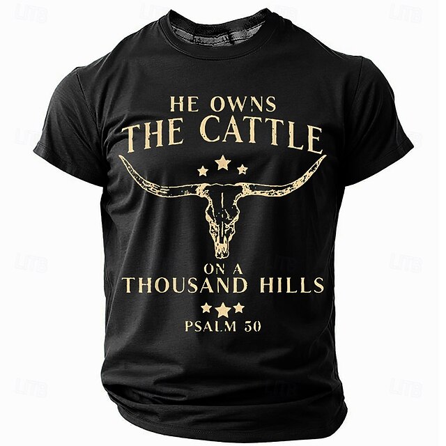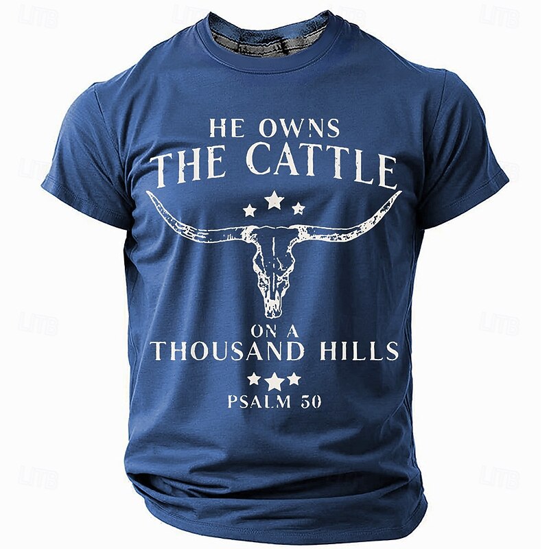 Why Choose Men's Short Sleeve T-Shirt: "He Owns The Cattle On A Thousand Hills" Psalm 50 Religious Christian Western Graphic Tee?