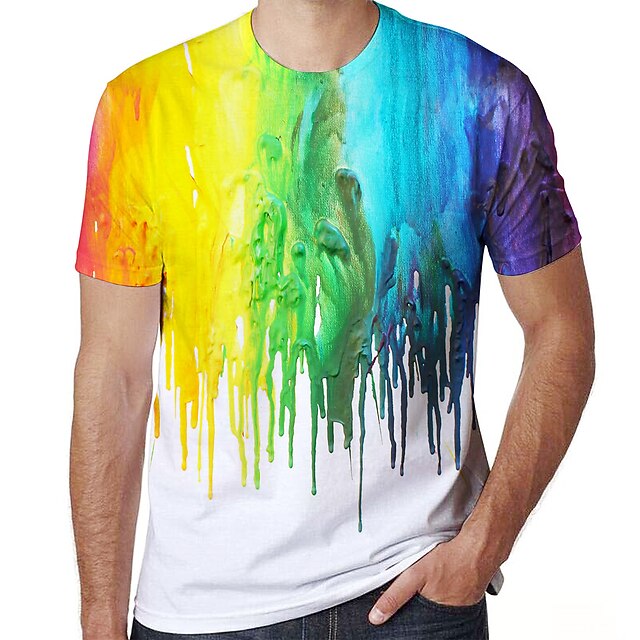 More information about Men's Graphic Rainbow Mixed Color Shirt T Shirt Tee Short Sleeve T shirt 3D Print Round Neck Shirt Active Daily Sports Weekend White Spring & Summer Clothing Apparel Plus Size S M L XL XXL 3XL