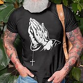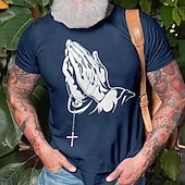 Highlights [Fabric] : Crafted from a durable polyester blend, this men's t-shirt offers micro-elastic properties that ensure comfort and flexibility during wear. The material is both soft and breathable, making it ideal for spring and summer seasons. [Fit] : This t-shirt features a form-fitting design that maintains a relaxed and casual silhouette. Its tailored fit ensures that it complements the natural shape of the body, providing a modern and sophisticated appearance. [Design Highlights] : The shirt boasts an eye-catching 3D print that showcases a meaningful graphic of praying hands holding a rosary, with a cross symbolizing faith prominently displayed. The crew neck and short sleeves contribute to a classic and versatile look, suitable for various casual settings. [Occasions] : Perfect for a range of events from casual outings to holiday celebrations, this t-shirt is versatile enough to be worn for street style and party occasions. Whether you're dressing for a laid-back weekend or attending a casual gathering, this piece allows you to express your personal style with ease. [Size Range] : Available in a variety of sizes from S to XXXL, this t-shirt caters to different body types, ensuring a comfortable fit for all customers. The multiple color options, including blue, green, and black, enhance its versatility and appeal. Perfect for everyday use. premium materials and excellent craftsmanship ensure long-lasting durability.