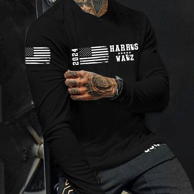 Harris Wasz 2024 Election American Flag Men's Long Sleeve Graphic Tee