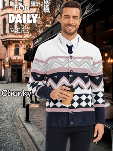 Why Choose Mens Cardigan Sweater, Shawl Collar Long Sleeve Button Down Color Block Graphic Print, Fall Winter Casual Outfits?