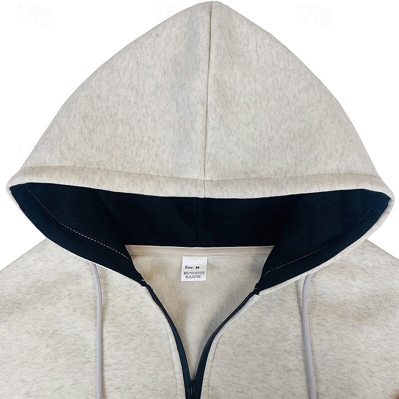More information about Men's Hoodie Full Zip Hoodie Apricot Black Army Green Navy Blue Light Grey Hooded Plain Patchwork Sports & Outdoor Casual Daily Streetwear Cool Designer Spring & Fall every Seasons Clothing Apparel