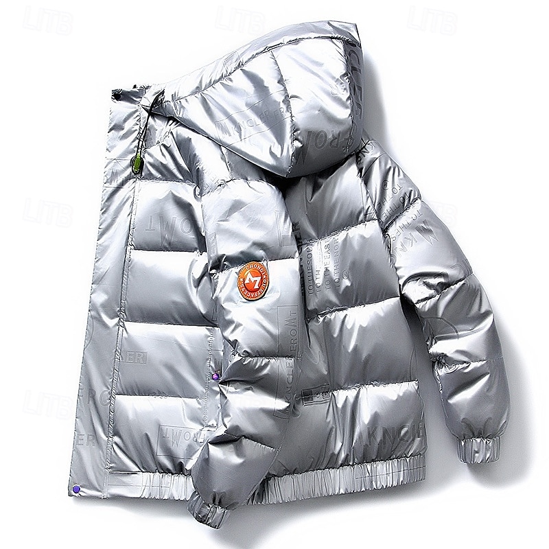 Why Choose Men's Winter Coat Puffer Jacket Hoodie Jacket Imitation Silk Cotton Hoodie Outdoor Casual Daily Short Windproof heated Fall & Winter Solid / Plain Color Silver Black White Puffer Jacket?