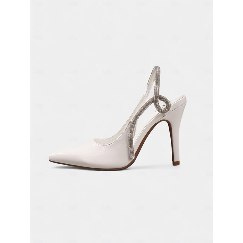 Highlights - Luxurious patent leather upper - Elegant synthetic leather lining - Sparkling rhinestone embellishment - Chic pointed toe shape - sturdy rubber outsole