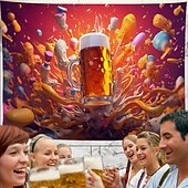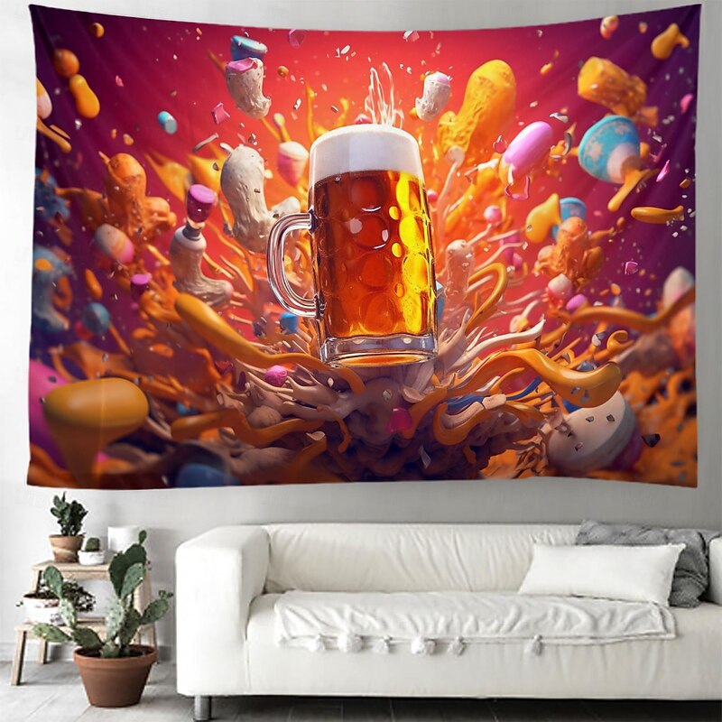 Highlights [Fabric] : Crafted from lightweight polyester, this tapestry offers durability and easy maintenance. Its soft texture ensures a smooth finish that is easy to hang and transport, perfect for transforming any space with minimal effort. [Design Highlights] : The tapestry features a vibrant and dynamic design capturing the essence of a lively beer fest. With a high-definition digital print, the scene of overflowing frothy beer mugs against a colorful sky brings a sense of celebration and camaraderie to your decor. [Style] : The contemporary, novelty style of this tapestry makes it a standout piece that brings life to your room with its richly colored display and festive imagery. [Occasions] : Ideal for home decoration or event settings, this tapestry can become a focal point for spaces such as the kitchen, bar, or entertainment area. It's an excellent choice for beer enthusiasts wanting to express their love for social gatherings and festive joy. [Size Guidance] : Available in a size of 150cm x 130cm, this large tapestry fits well on extensive wall spaces, making it a striking decorative feature in various room sizes and layouts. Perfect for everyday use. top-grade materials and excellent craftsmanship ensure long-lasting durability.