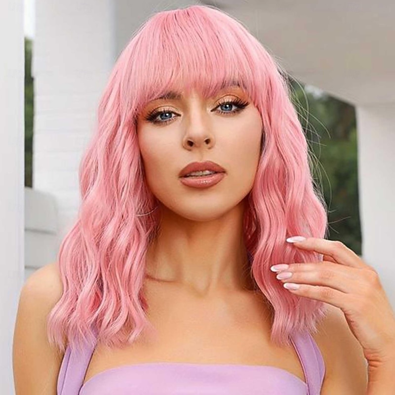 $18.49 - Wavy Wig with Bangs Soft Short Bob Wigs for Women Synthetic Shoulder Length Women's Curly Wigs for Halloween Costumes Cosplay Daily 2025. Shop for cheap Synthetic Trendy Wigs online? Buy at lightinthebox.com on sale today!