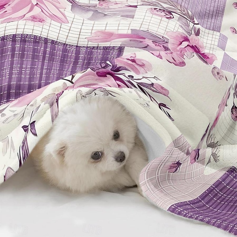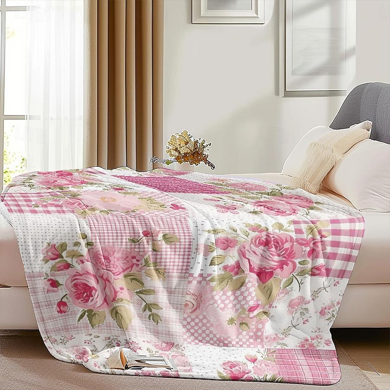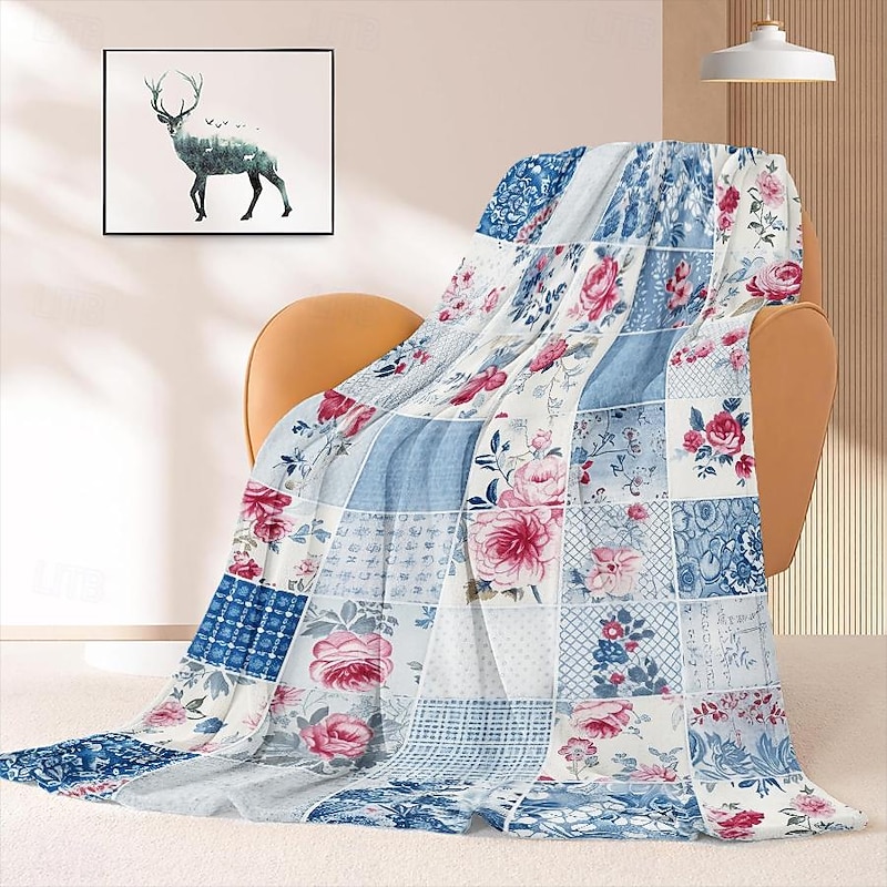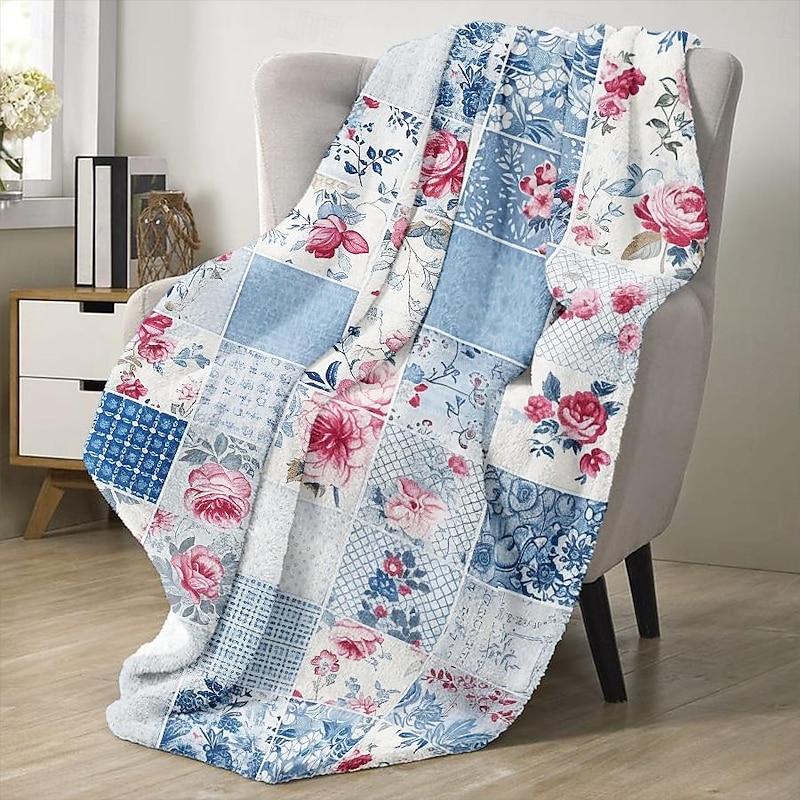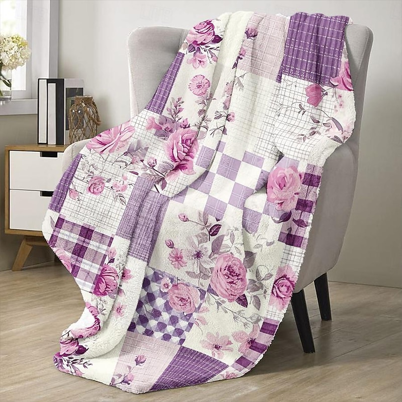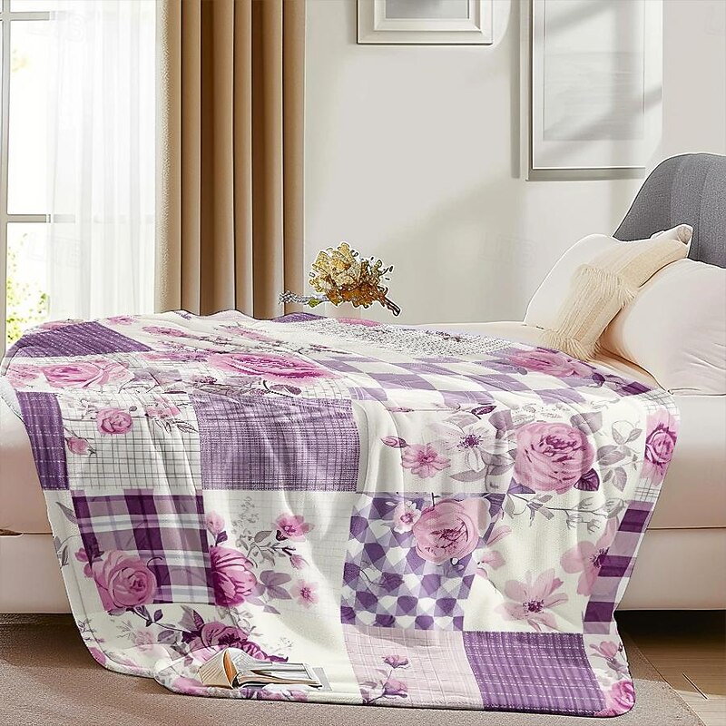 Highlights [Fabric] : Crafted from high-quality flannel and polyester, this throw blanket offers a plush and cozy texture that provides both comfort and warmth. The material is soft to the touch, ensuring a delightful experience during any season. [Pattern] : Featuring a vibrant patchwork design, this blanket incorporates a mix of floral motifs and plaid elements in soothing shades of purple and white. The attention to detail in the reactive print and the use of 3D print technology bring the patterns to life, adding an elegant touch to any room. [Design Highlights] : The blanket showcases delicate floral motifs, including roses and leaves, which contribute to its feminine and timeless elegance. This thoughtful design element makes the blanket not only a functional piece but also a fashionable addition to your home decor. [Occasions] : Ideal for all seasons, this versatile blanket can be used as a cozy throw for the couch, a decorative bedspread, or a stylish accent in your living space. Whether it's for a quiet evening at home or adding a layer of warmth during a chilly night, this blanket is perfect for various settings and occasions. [Size Range] : Available in multiple sizes to suit different needs, including 100x130 cm (39x51 in), 130x150 cm (51x59 in), and 150x200 cm (59x79 in). Select the size that best fits your space and enjoy the comfort and style it provides. Perfect for everyday use. top-grade materials and excellent craftsmanship ensure long-lasting durability.