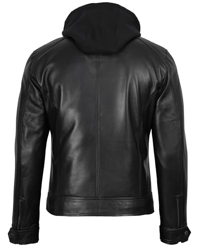 sizzling ! fjackets Men Leather Bomber Jacket - Real Lambskin Men's Leather Jackets with Detachable Hood Casual Leather Jackets For Mens