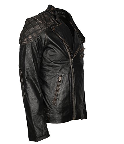 More information about Mens Skull & Bones Black Distressed Leather Vintage Motorcycle Cowhide Jacket