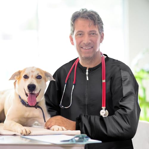 Fabric type: PolyesterCare instructions: Machine WashOrigin: ImportedAvailable in 3 Size: Our pet grooming workwear provides a rich selection of sizes. The medium size: 32 inches in length, 42 inches in chest circumference, 16.5 inches in shoulder width, 21 inches in sleeve length. Please confirm the size before ordering and choose the corresponding size in chart.Waterproof Material: This dog grooming smock is made of premium polyester cloth material, durable and soft, anti-static and quick drying. The high quality waterproof material offers superior protection for your clothes and items from flying hair and suds.Thoughtful Design: This pet groomer uniform features long sleeves with elastic cuffs, keeping pet hair out of your clothes. And we also designed with two pockets, so that you can put grooming kits or other little tools in them, which will strengthen your work efficiency.Comfortable to Wear: Our hairdresser uniform only weights 180g, very lightweight to wear. And this uniform is designed with the smooth full zipper, easy to put on and take off. The fine-reinforced sewing process also ensures our workwear for long-term use.Widely Used: This professional jacket is perfect for pet groomer, barber, stylist, nail technician, massage therapist, hairdresser, esthetician. With classic black color design, it is suitable for both men and women, ideal for salon, barber shop, pet shop. Perfect for everyday use. High quality materials and excellent craftsmanship ensure long-lasting durability.