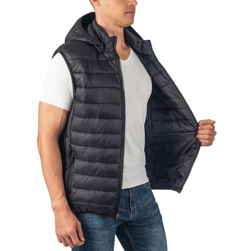 Alpine Swiss Gage Men's Puffer Vest Down Alternative Light Packable Water-Resistant Quilted Sleeveless Jacket Removable Hood
