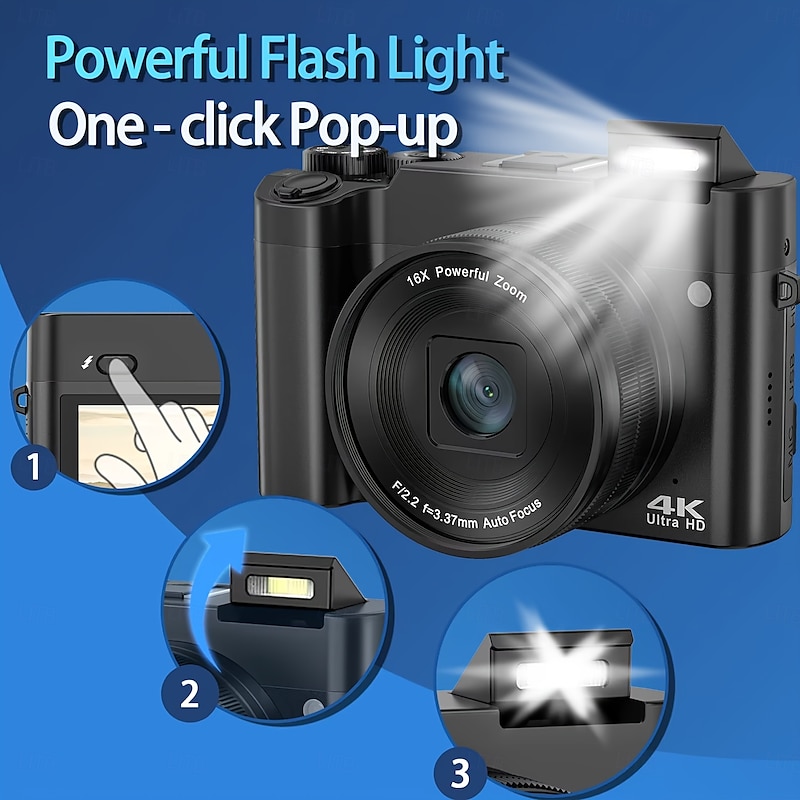sizzling ! 4K UHD Digital Camera 64MP Dual Cameras Auto Focus Selfie Vlogging with Bright Flash 16X Zoom Compact Travel Digicam Point and Shoot