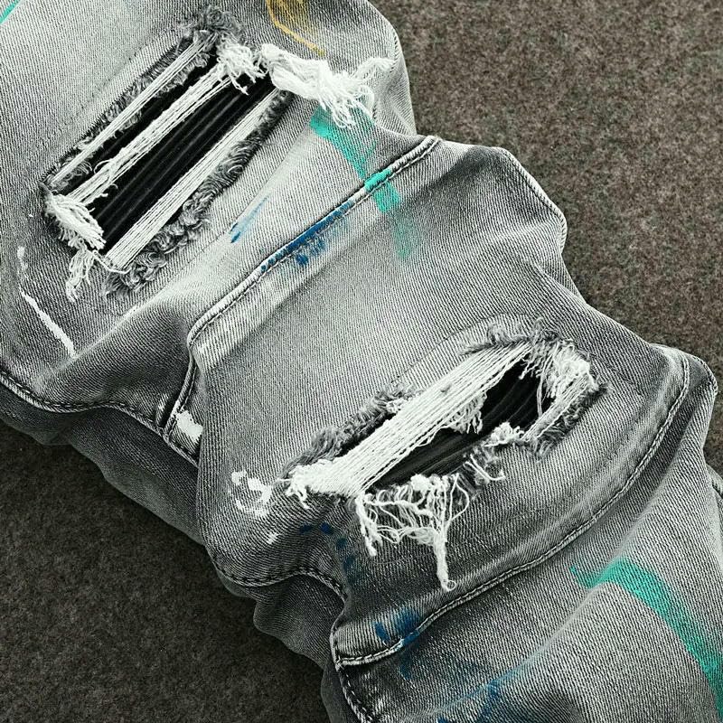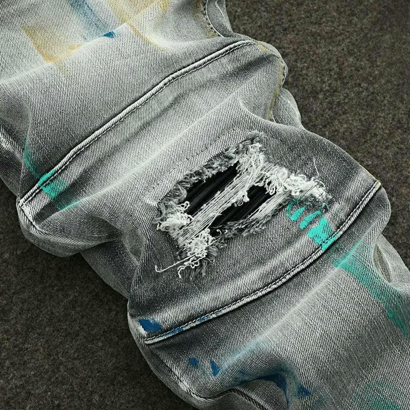 • men's ripped skinny jeans stretch slim fit denim pants hip hop streetwear jeans men vintage washed denim trousers patched biker jeans graffiti paint splatter jeans embroidered denim pants men spliced designer jeans elastic waist lyocell jeans camo1 street jeans men distressed slim jeans casual ripped denim trousers street style hip hop pants retro black denim jeans tapered fit jeans men slim fit pencil jeans gentle lyocell denim summer ripped jeans men slim patched denim vintage street jeans