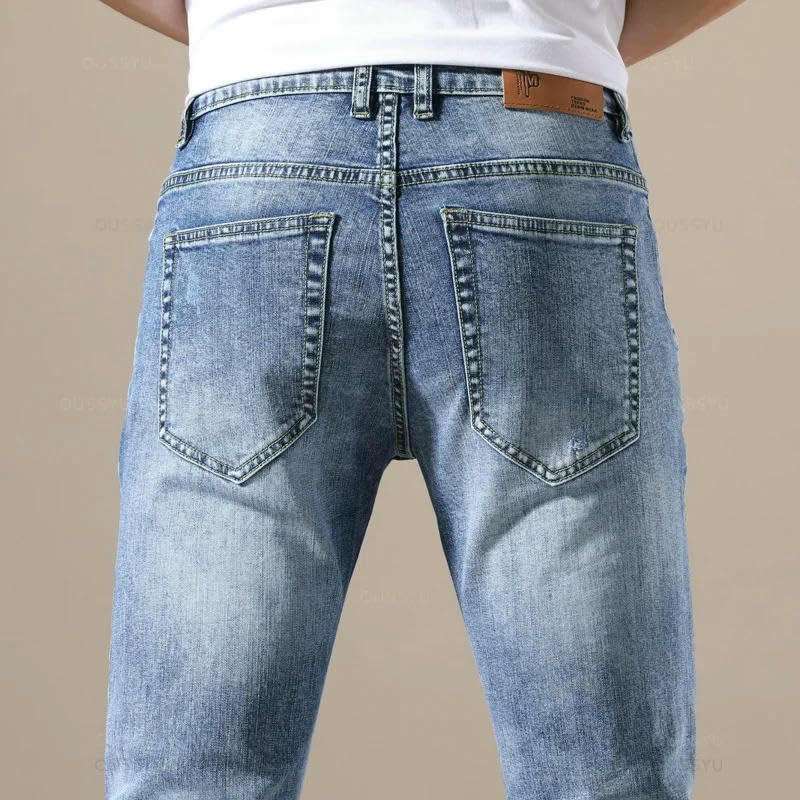 sizzling ! Men’s Slim Fit Stretch Jeans Lightweight Tapered Denim Pants Faded Wash Casual Streetwear