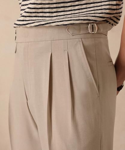 More information about Vintage Men's High - Waisted Pleated Cotton Trousers with Buckle, Retro Fit for Daily