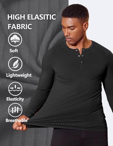 COOFANDY Men's Muscle T-Shirt Slim Fit Long Sleeve Henley Shirts Casual Gym Workout Athletic Tee Shirts