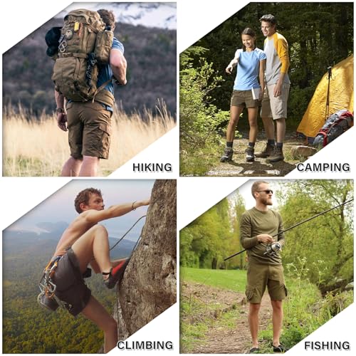 Fabric type: 64% Polyester, 34% Cotton, 2% SpandexCare instructions: Machine WashOrigin: ImportedClosure type: ButtonDURABLE & STRETCH FABRIC:Mens tactical cargo shorts are made of UPF 50 fabric for maximum protection against the sun,durable cotton adds comfort and scratch-ability to this hiking shorts,4-Way elastic spandex ensures tactical movement is more flexible and suitable for extremely harsh environments.High quality fabric suitable for extremely harsh environments.MULTI-STRATEGIC POCKETS:Tactical shorts for men feature 2 front pockets,4 pockets with closure and 2 back pockets to create more space for essentials,2 straight pockets on the back of the thigh can be used to carry small items such as tactical pens and flashlights.Free your hands in outdoor sports.COMFORTABLE WAIST & VERSATILE:Quick dry shorts for men features partial elastic waist with belt loops for ultimate flexibility,and can adapt to different body types.Two D-rings provide simple hook-mounted climbing gear.WATER-RESISTANT & BREATHABLE:Water-resistant fabric provides protection against light rain and moisture while effectively isolating oil and liquids.Wicking fabrics take moisture away,keeps you cool,dry and breathable.Mens Fishing Shorts:Mid and high rise,3D cutting,Suitable for daily wear or outdoor activities and sports,such as walking,biking,fishing,hunting,camping,traveling,rock climbing and boating. Perfect for everyday use. High quality materials and excellent craftsmanship ensure long-lasting durability.