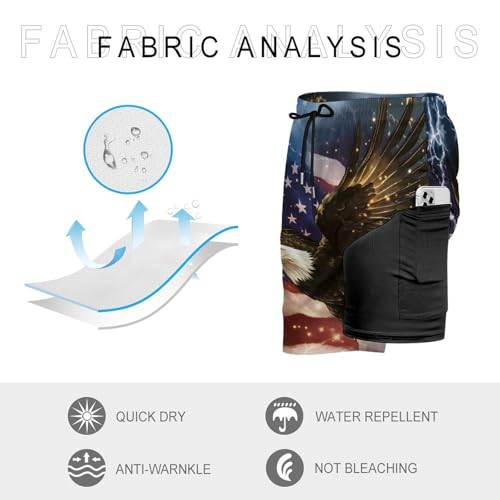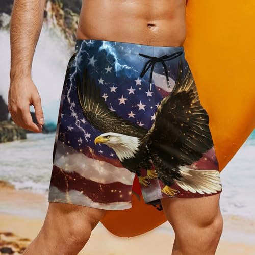 U.S Flag Bald Ea-gles Men's Swim Trunks speedy Dry Bathing Suit Board Shorts with Compression Liner