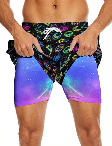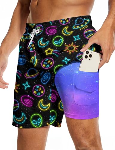 Men's Swim Trunks with Compression Liner 7 Inch Inseam Beach Shorts speedy Dry Bathing Suits