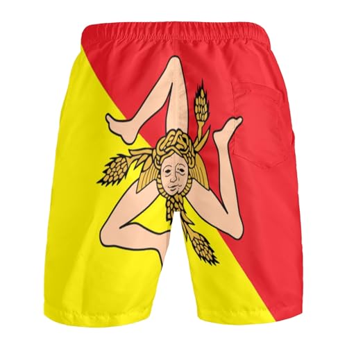 sizzling ! Sicilian Flag Men's Swim Trunks Beach Shorts with Pockets Athletic Pant S