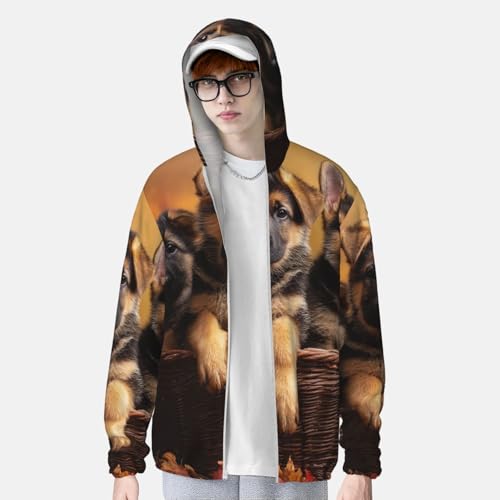 Fabric type: 100% PolyesterBreathable & Quick-Dry: Our summer long sleeve Little german shepherd dog sun protection shirts are made from quick-dry and breathable elastic material that dries quickly. It breathes easily to vent excess heat and moisture to keep you cool, dry, and moving comfortably.UV Protection: Our Little german shepherd dog long sleeve sun shirts features cutting-edge UPF 50+ technology, effectively blocking UV rays to ensure robust sun protection during your outdoor adventures. Designed with a hood to protect the neck, and other sun-exposed areas. Ideal for extended outdoor activitiesLightweight & Comfort: The ultralight Little german shepherd dog fishing shirt is designed for a natural fit, the ultralight fabric and ergonomic flat-lock seam construction reduce chafing. Our fishing shirts moves effortlessly with your body, ensuring all-day comfort.Designed for Outdoor Sports: Whether you're fishing, hiking, running, swimming, rash guard, or simply enjoying the beauty of nature, our sunproof hoodie is the perfect companion for all your activities; Seamlessly blending style with protection, it meets your outdoor adventure needs with perfection.Versatile Style: This men's sun protection shirt has a simple and elegant design, which is not only suitable for matching with swimsuits and sportswear, but also can match up with a variety of pants and shoes. Now you can choose a distinctive sun protection clothing for your family, friends or yourself to protect the skin and show your fashion sense at the same time. Perfect for everyday use. premium materials and excellent craftsmanship ensure long-lasting durability.