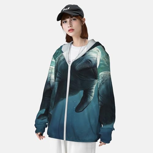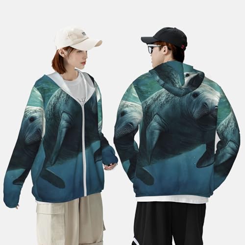 Fabric type: 100% PolyesterClosure type: ZipperNeck style: Hooded NeckSleeve type: Long SleeveBreathable & Quick-Dry: Our summer long sleeve Ocean Animal Manatee sun protection shirts are made from quick-dry and breathable elastic material that dries quickly. It breathes easily to vent excess heat and moisture to keep you cool, dry, and moving comfortably.UV Protection: Our Ocean Animal Manatee long sleeve sun shirts features cutting-edge UPF 50+ technology, effectively blocking UV rays to ensure robust sun protection during your outdoor adventures. Designed with a hood to protect the neck, and other sun-exposed areas. Ideal for extended outdoor activitiesLightweight & Comfort: The ultralight Ocean Animal Manatee fishing shirt is designed for a natural fit, the ultralight fabric and ergonomic flat-lock seam construction reduce chafing. Our fishing shirts moves effortlessly with your body, ensuring all-day comfort.Designed for Outdoor Sports: Whether you're fishing, hiking, running, swimming, rash guard, or simply enjoying the beauty of nature, our sunproof hoodie is the perfect companion for all your activities; Seamlessly blending style with protection, it meets your outdoor adventure needs with perfection.Versatile Style: This men's sun protection shirt has a simple and elegant design, which is not only suitable for matching with swimsuits and sportswear, but also can match up with a variety of pants and shoes. Now you can choose a distinctive sun protection clothing for your family, friends or yourself to protect the skin and show your fashion sense at the same time. Perfect for everyday use. premium materials and excellent craftsmanship ensure long-lasting durability.
