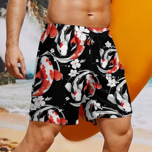 Yin-Yang Japanese Fish Mens Swim Trunks with speedy-Drying Lining Beach Shorts for Outdoor Sports