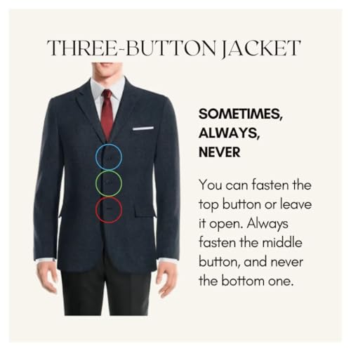 • Three Button Jacket Suit Features: Package Included(3-Button Jacket*1+Dress Pants*1) This three button jacket suit set are with notched lapel, flap pockets, single breasted features, a three - button closure, stands out from the common two - button styles. You can choose to button up one, two, or entire three buttons depending on the formality of the event and your personal style preference.