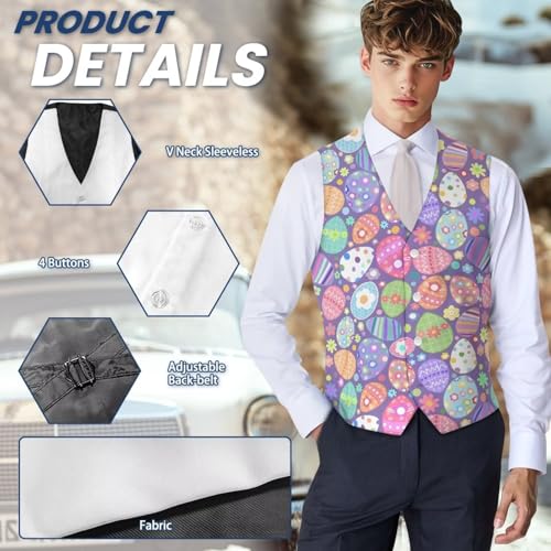 • Features: Men's dress vest, v neck, 4-button closure, sleeveless, slim fit, vest jacket with adjustable belt on the back. The chic suit vest features a simple design that allows you to stay relaxed and cushy and look striking and handsome