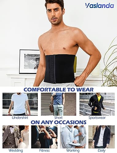 Fabric type: TUMMY CONTROL FOR MEN IS RELATIVELY SMALLER, CHOOSE A SIZE UP FOR CASUAL SHAPER.Care instructions: Hand Wash Only【SKIN-FRIENDLY MEN TUMMT SHAPER】: Nylon 80% + Spandex 20%. Men’s waist cincher is made of elastic, soft, breathable, durable, no fade and high compression fabric on your skin, which is won't cause any harm even when worn during strenuous activities or daily routines. The slim and close-fit design make the waist trimmer belt to invisible under any clothes and allows you plush to wear all day.【3 ADJUSTABLE HOOKS MESH FIRM CONTROL】: Tummy control shaper for men is equipped with 3 rows of hook and eye closure to control the compression you need. And waist trainer corset is designed with double layer mesh, which strengthen slim your body, make your abdomen, waist, lower back firm and instantly reduce your waist line at least 3 mm.【SEAMLESS WAIST FAT REDUCER】: Seamless wrap belt design provide 360° extra comfort with firm control over the body effectively tightens your waist and minimizes bulges, giving you a sculpted and fit shape that easily conforms to your body. Weight loss body shaper perfectly helps men to get rid of bumpy fat, 'beer belly' and love handles, also suitable for assisting recover from post surgery or liposuction.【POWERFUL MAN】: Suitable for all seasons, slimming belt can be used for body sculpting, as fitness or daily wear not easy to deform and not roll up for men, smoothing your figure and keeping your abdomen flat. And seamless band body shaper perfectly match with undershirts, suit, sweaters or any everyday clothes on any occasions, such as business, party, wedding, dates, gym, running, cycling, sports, exercise or workout, ect.【Vaslanda PROMISED AND TIPS】: The secret to satisfaction with these men's black slimming cincher is to ORDER THE CORRECT SIZE. For a more sculpted look, always refer to our size chart for the best fit from SMALL to X-Large shapewear. BELLY TRIMMER UNDERWEAR IS RELATIVELY SMALLER, CHOOSE A SIZE UP FOR CASUAL SHAPER. Perfect for everyday use. premium materials and excellent craftsmanship ensure long-lasting durability.