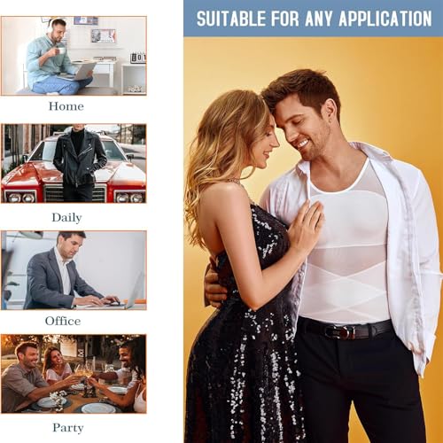 • Enhance Masculine Charm: Say goodbye to the sloppy look and hello to a confident, chic appearance. Whether at work or at a party, our cushy compression garments ensure you look and feel your best. The seamless design allows it to be worn under any outfit, whether workout clothes, casual tees, pullovers, or formal shirts.