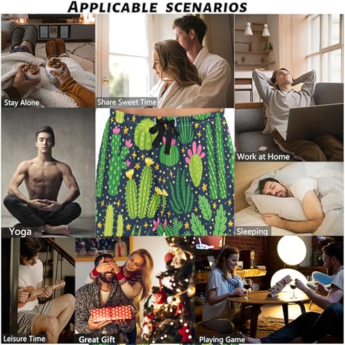 visesunny Mens Cotton Pajama Pants PJ Bottoms Funny Green Cacti Desert Plant Lightweight gentle Lounge Sleepwear