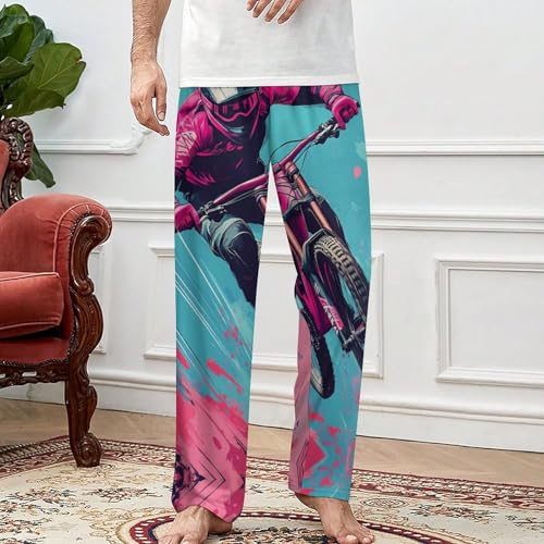 Mountain Bike Biker Racing Pajama Pants Men Lightweight Pjs Elastic Waistband Sleep Lounge Pants Fashion Loungewear