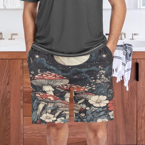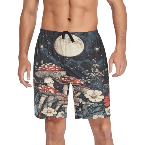 Moon Red Flower Mushroom Pajama Shorts for Men Lounge Pants Athletic Shorts Mens Short Shorts with Pockets, S-XXL