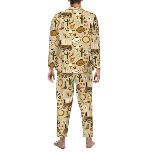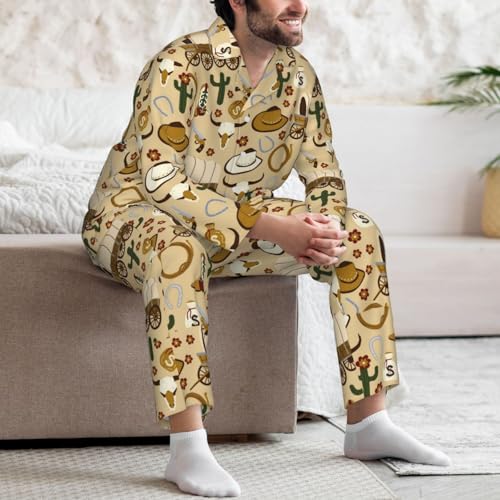 Wild West Cowboy Mens Pajama Sets 2 Piece Loungewear Button Down Sleepwear Pjs Set