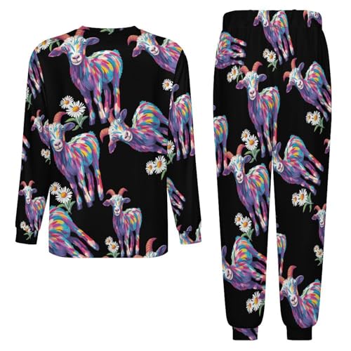 sizzling ! Goat Daisy Mens Pajamas Set Long Sleeve Sleepwear Pjs Set Shirts And Bottoms Sleep Sets Loungwear