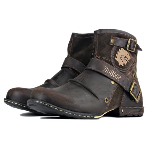 Mens Chukka Biker Cowboy chic Motorcycle Combat Hiking Fashion Casual Cowhide Leather Ankle Side Zipper Boots 5008-1-DD1D2