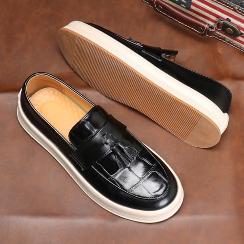 Men's Plaid Leather Slip On Tassel Loafers Round Toe Low Top Non-Slip Fashion Sneaker Lightweight pleasant Business Casual Dress Shoes for Office Party