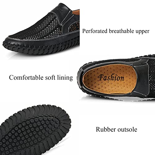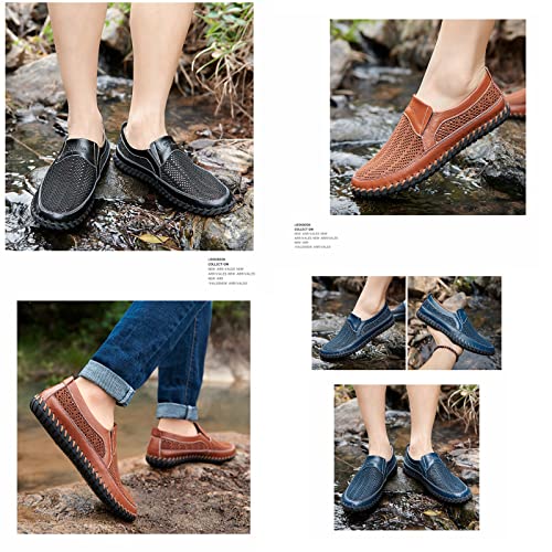 Men's Breathable Hollow Handmade Loafers,Leather Breathable Mesh Fashion Slip-On Boat Shoes,Business Formal Casual Loafers.