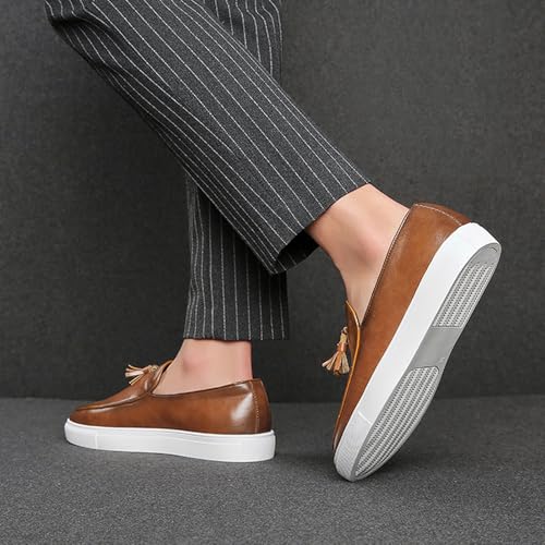 Men's gentle Leather Slip On Platform Loafers Fashion Round Toe Tassel Non-Slip Platform Business Casual Work Shoes for Party Wedding Office Dress Shoes