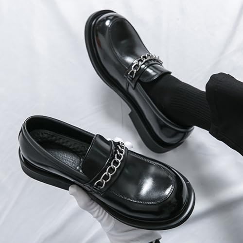 Men's Leather Metal Chain Low Block Heel Loafers Retro Wide Round Toe pleasant Slip-on Non-Slip Dress Shoes for Wedding Business Party Driving Casual