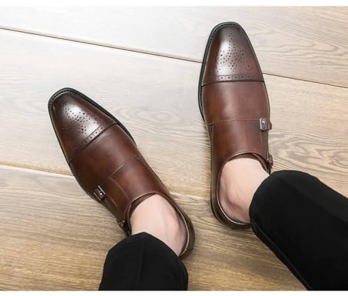 More information about Double Monk Strap Shoes Men Breathing iconic Retro Formal Business Loafer Dress Shoes Lightweight Leather Slip On Comfort Wear Low Heel Cap Toe Buckle Pull-on Oxford Casual Elegant Office Wedding