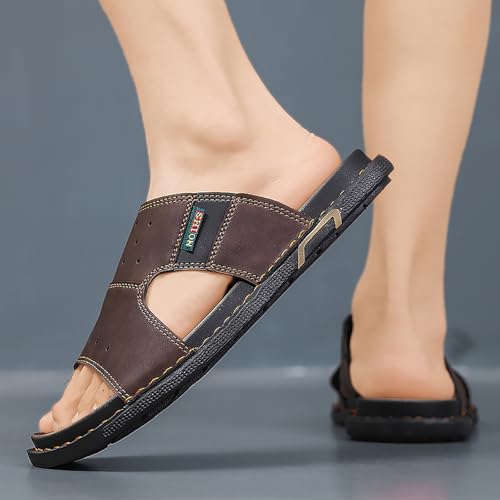 Men's Leather Slip On Slides Sandals Lightweight pleasant Open Toe Hand Stitched smooth Sole Casual Slippers Summer Anti-Slip Walking Beach Sandals