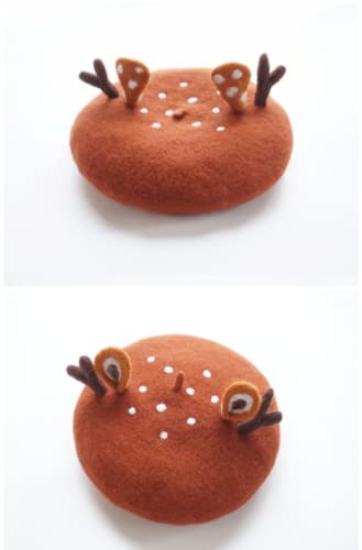 HOT ! Kawaii Deer Ear Berets Hat Cute Funny Christmas Fruits Cap Winter Warm Women Girls Gift red Pink