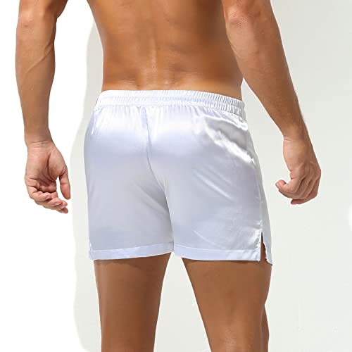 HOT ! Men's Silk Satin Frilly Beach Boxers Shorts Nightwear Pajamas Side Split Underwear