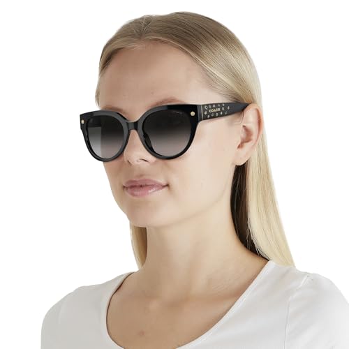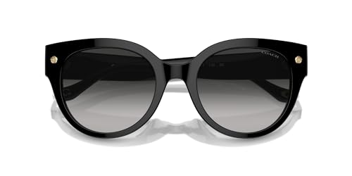 • FRAME FEATURES: HC8393U Universal Fit sunglasses feature a round, black frame with grey gradient lenses and signature Coach icons on the temples.