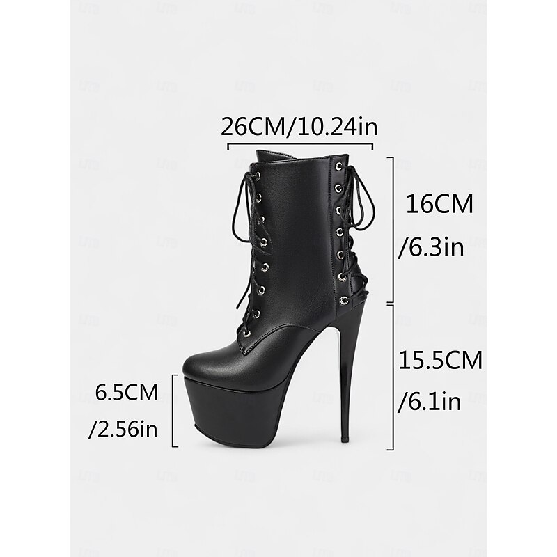 More information about Women's Black Faux Leather Lace-Up Platform Ankle Boots - Sexy High Stiletto Heel Short Booties for Nightlife & Pole Dance