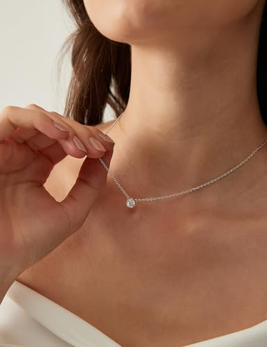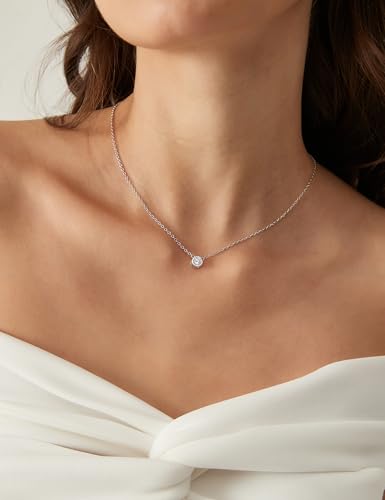 EAMTI 925 Sterling Silver Necklace for Women Cubic Zirconia Circle CZ Pendant Necklace Dainty Minimalist Jewelry Gifts for Women Extenders with Lobster Clasp Gifts for Women Anniversary Day 6