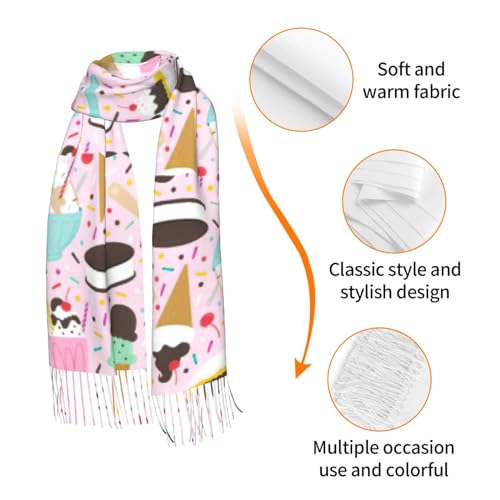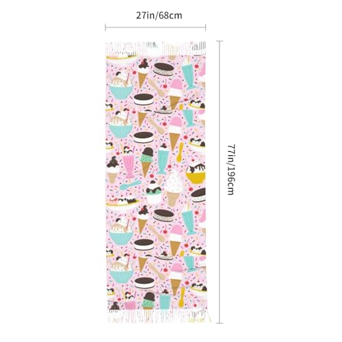 • This Sweet Ice Cream Print Women'S Shawl Scarf, With Its Thick Large Blanket Design, Serves Multiple Purposes - Be It As A Scarf, A Head Neck Scarf, Or A Large Blanket Wrap Shawl. The Scarf'S Unique Tassel Design And Fashionable Print Pattern Accentuate Your Style, Making It An Elegant Fashion Trend In The Chilly Winter Months.